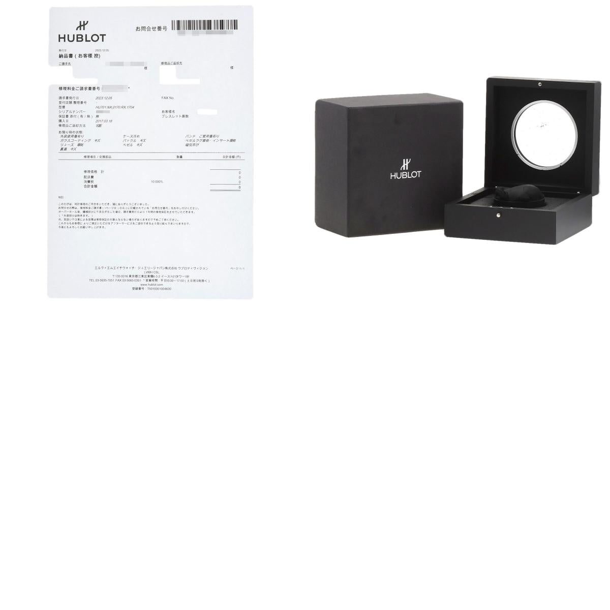 | Accessories | Box/Hublot repair certificate |