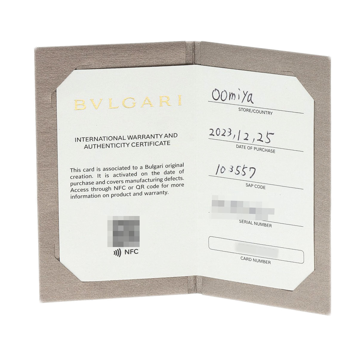 | Accessories | Bvlgari warranty card/box |
