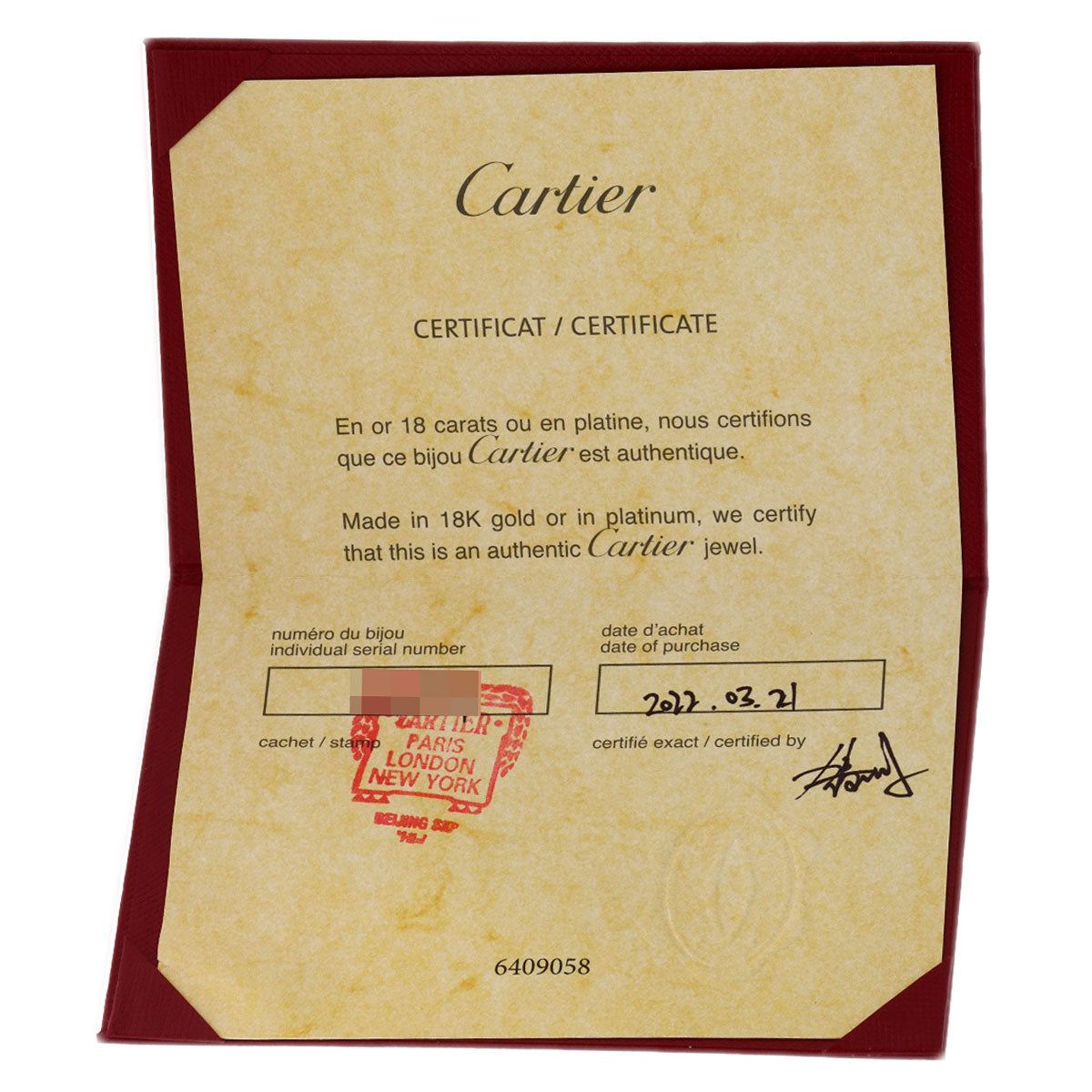 | Accessories | Cartier warranty card |