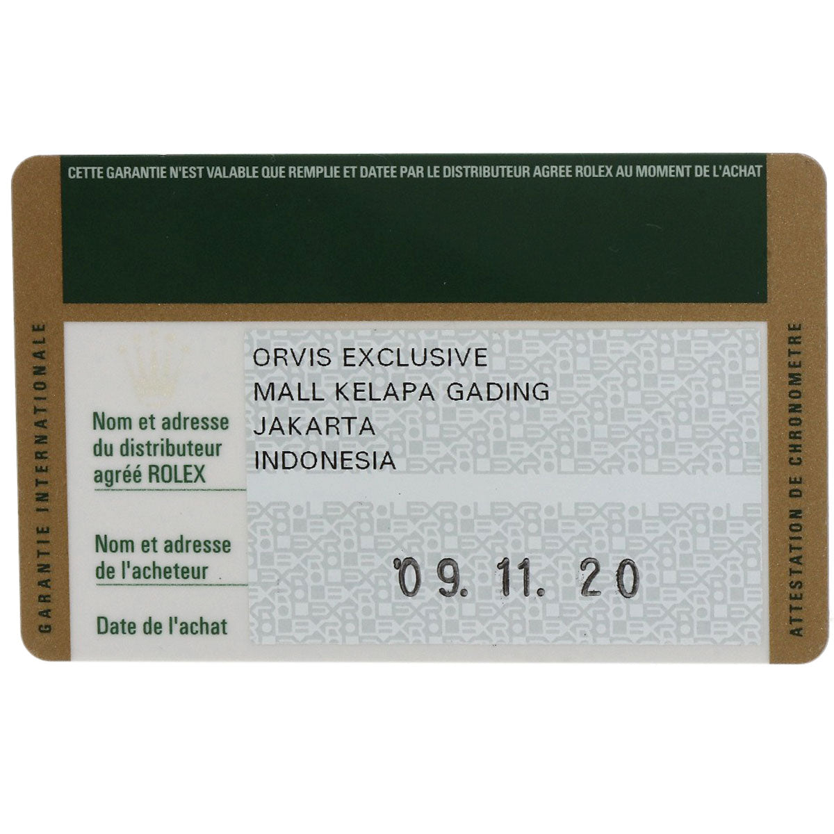 | Accessories | Rolex card |