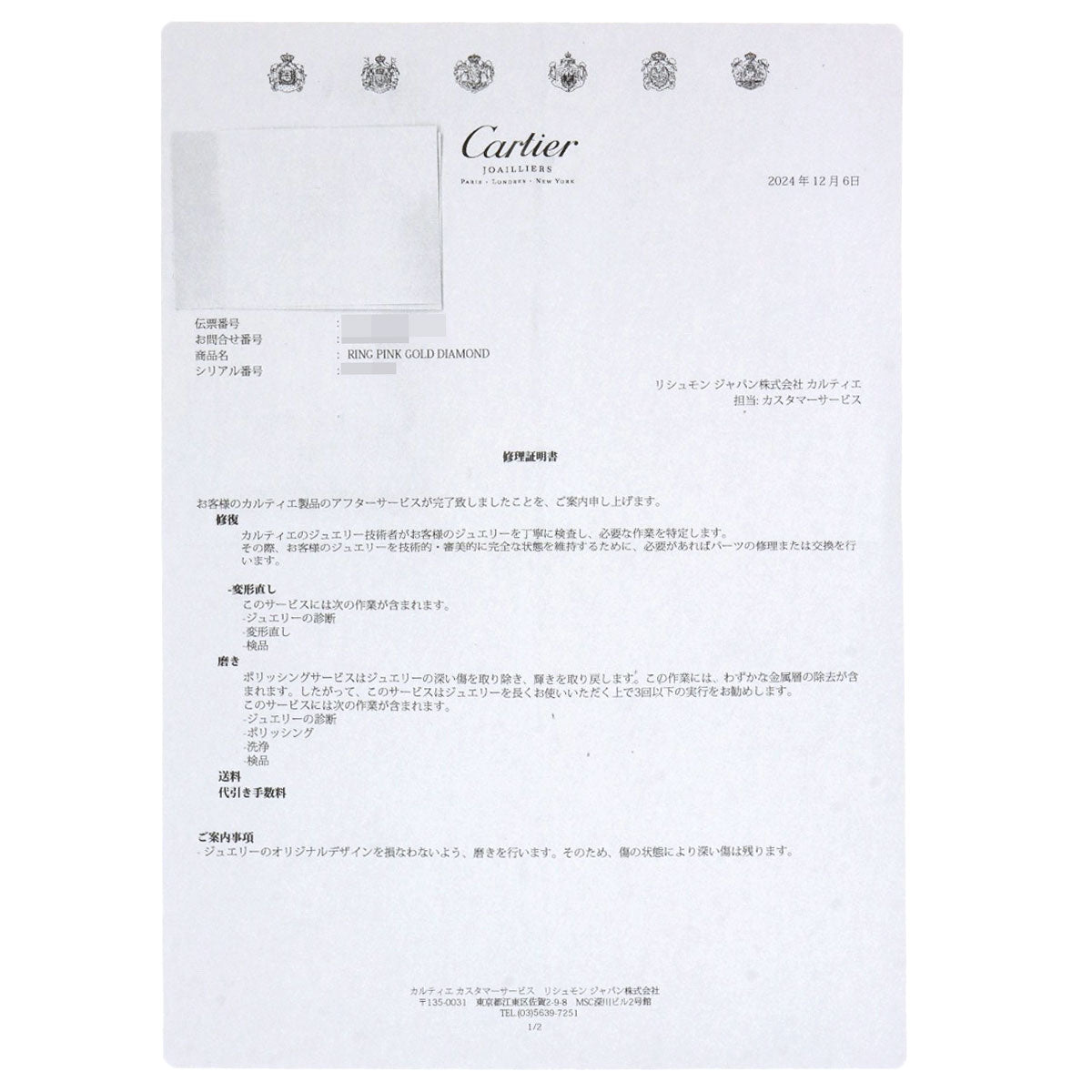 | Accessories | Cartier Repair Certificate |