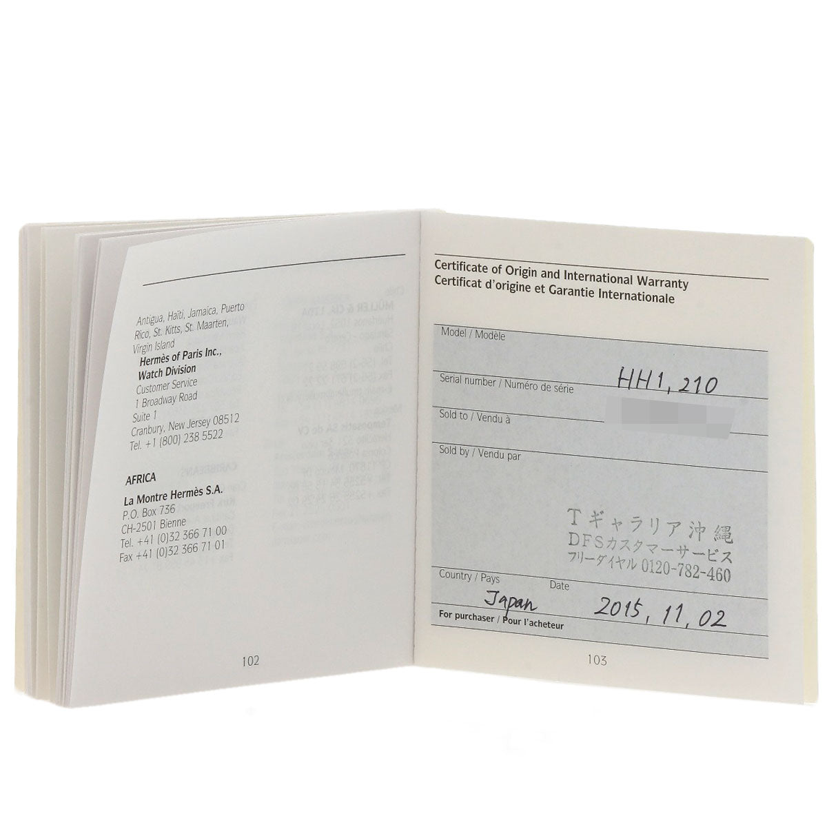 | Accessories | Box / Hermes Warranty |