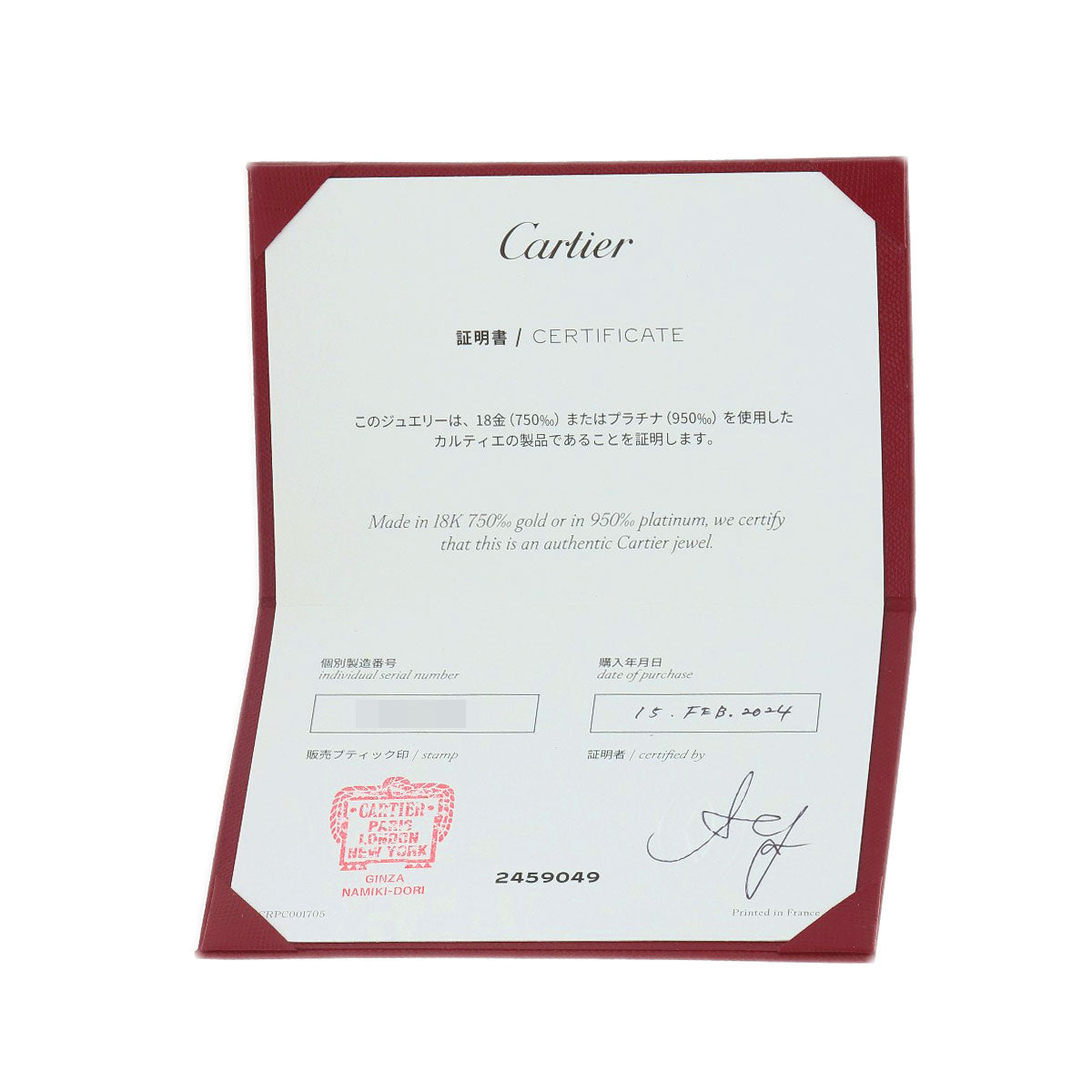 | Accessories | Cartier warranty card |