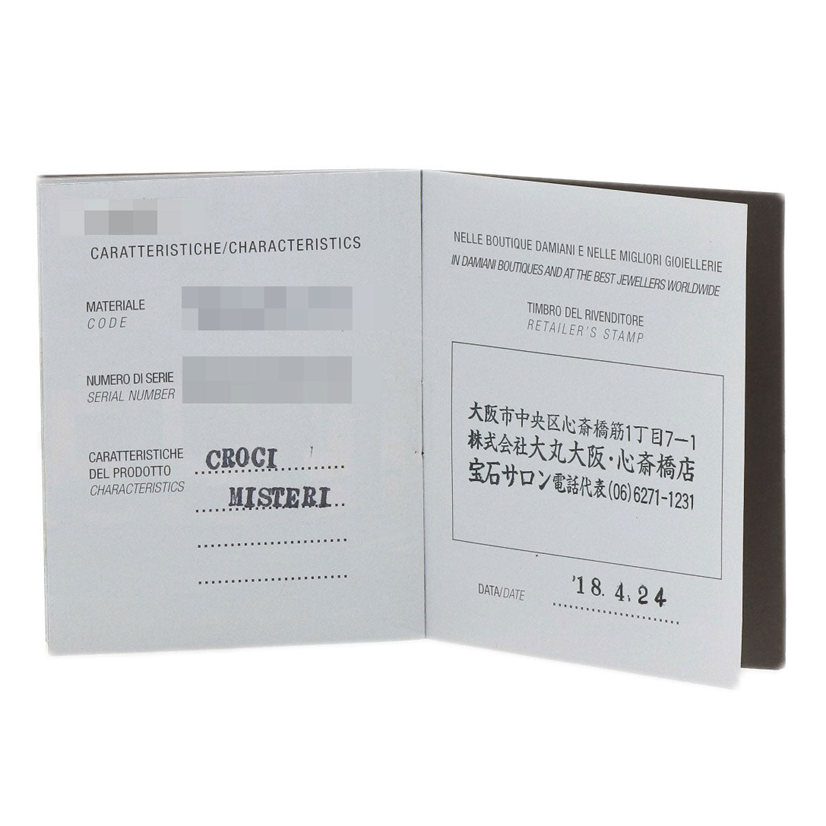 | Accessories | Damiani warranty and box |