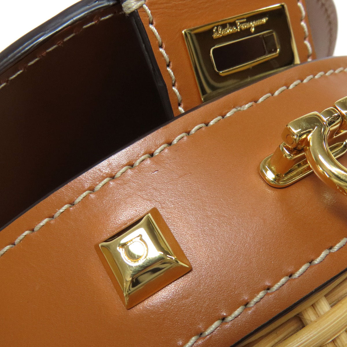 Salvatore Ferragamo Rattan Bag Shoulder Bag Raffia Ladies [Used]