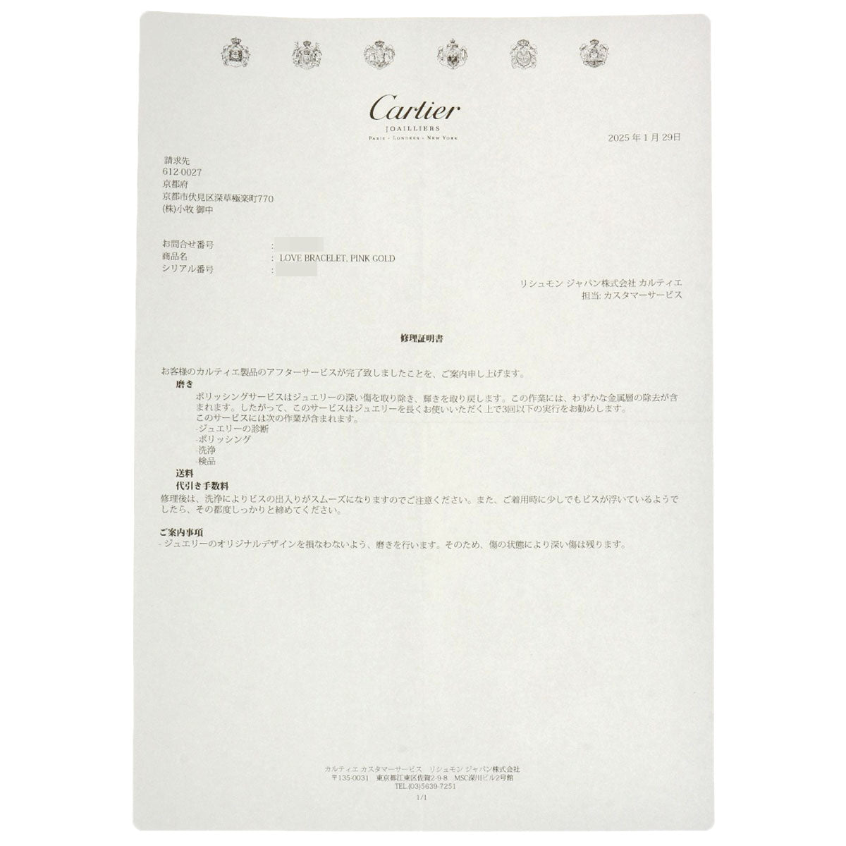 | Accessories | Inner box, Cartier repair certificate |