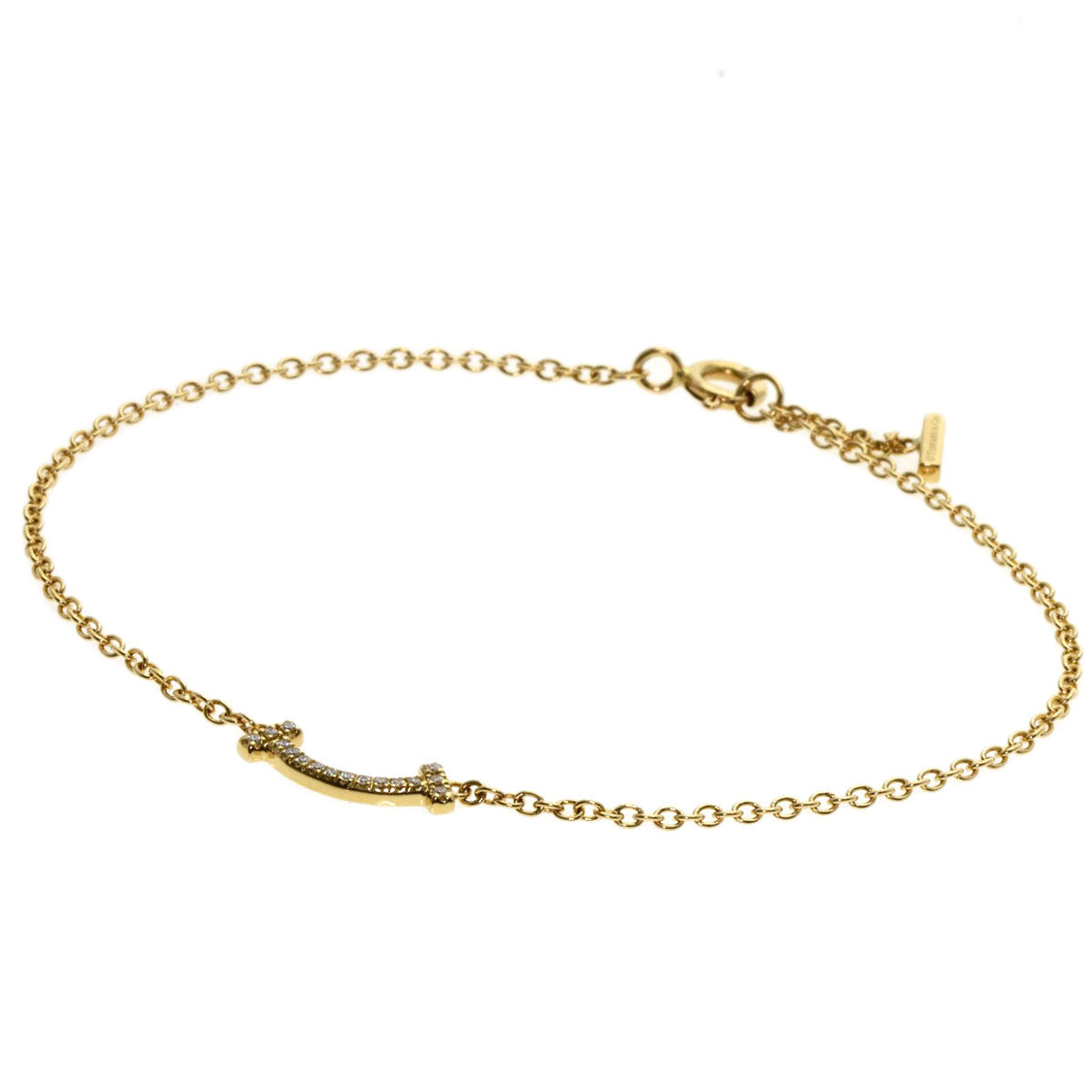 TIFFANY&Co. T Smile Mini Diamond Bracelet K18 Yellow Gold Ladies [Used]