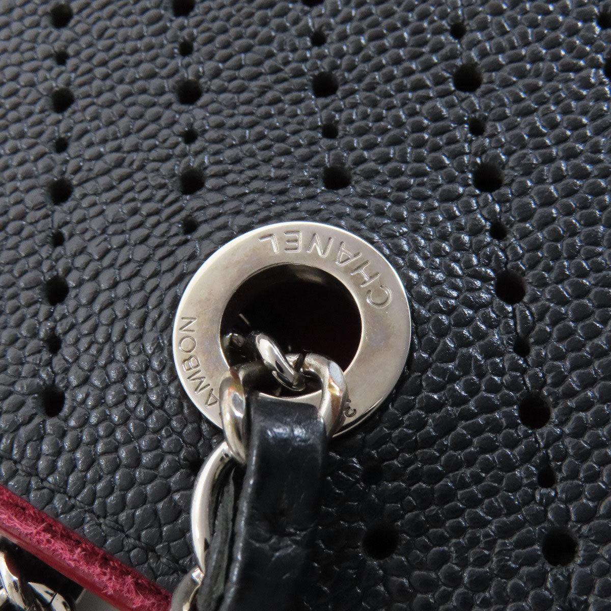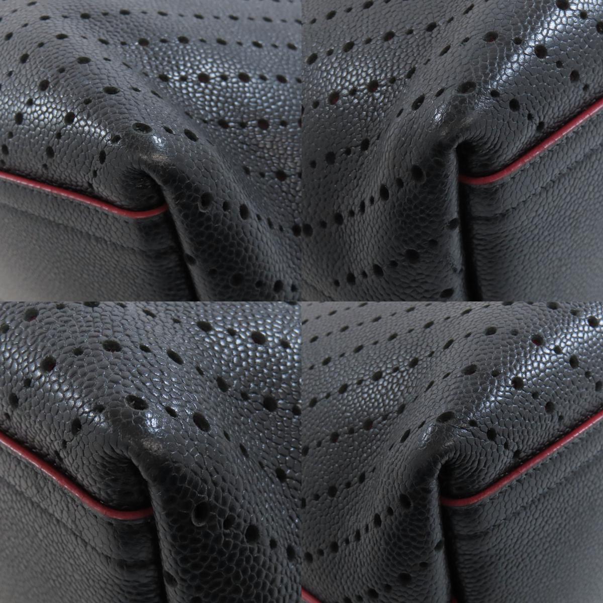 CHANEL Chain Tote Punching SilverHardware Tote Bag Grained Calfskin Skin Ladies [Used]