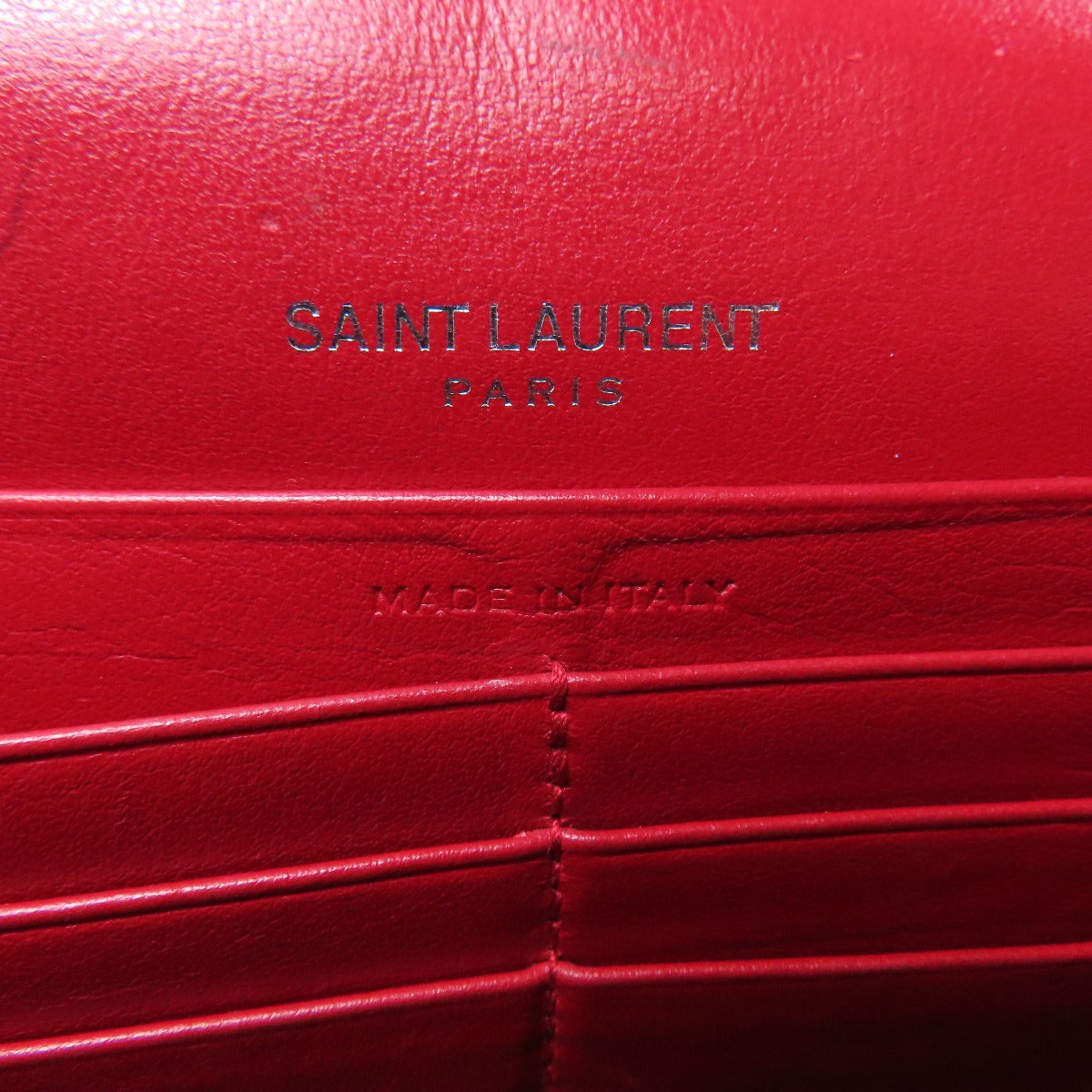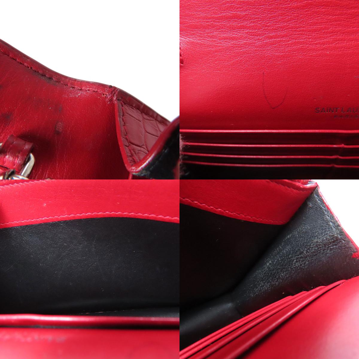 YVES SAINT LAURENT Chain Wallet Embossed Long wallet (with coin pocket) Leather Ladies [Used]