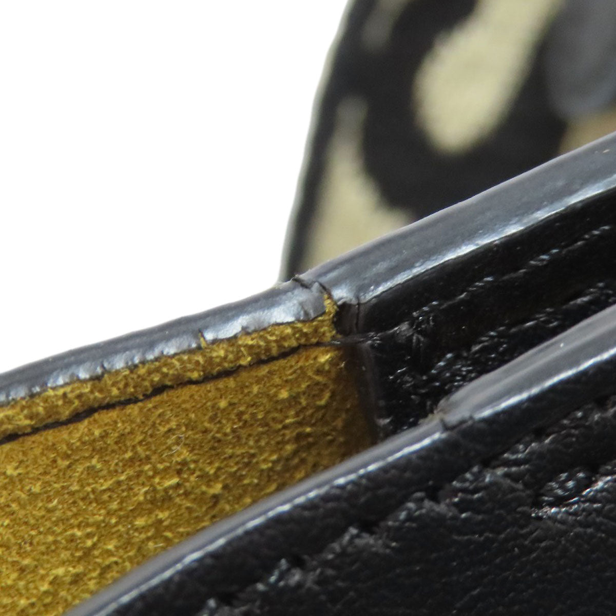 The fabric at the base of the shoulder is peeling off.