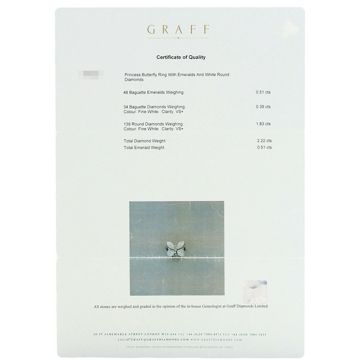 GRAFF Princess Butterfly Diamond Emerald Ring K18 White Gold Ladies [Used]